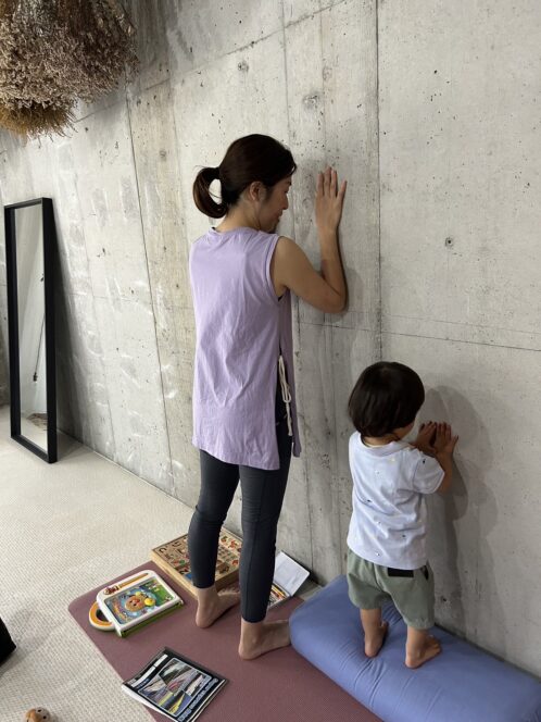 壁や椅子を使ってレッスンしてくれました。