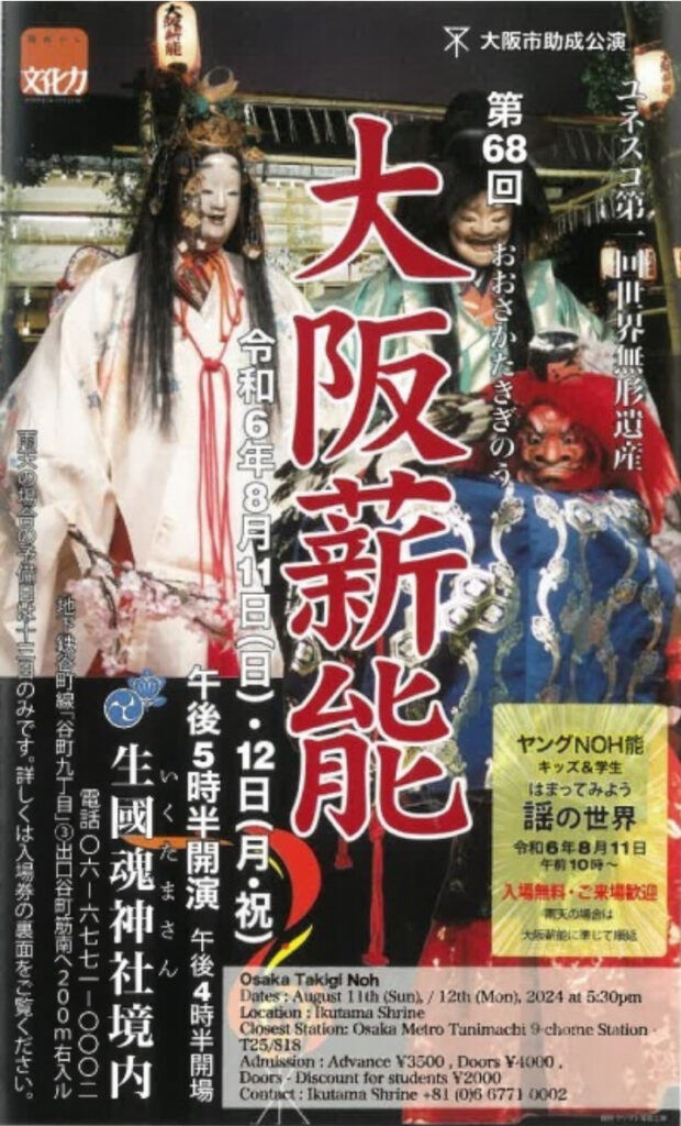 昨年に続き、今年も生國魂神社で開催された薪能