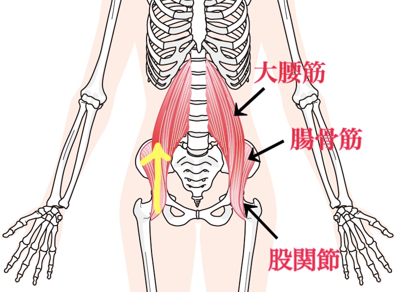 “股関節から骨盤上部”に伸びる「黄色の矢印」